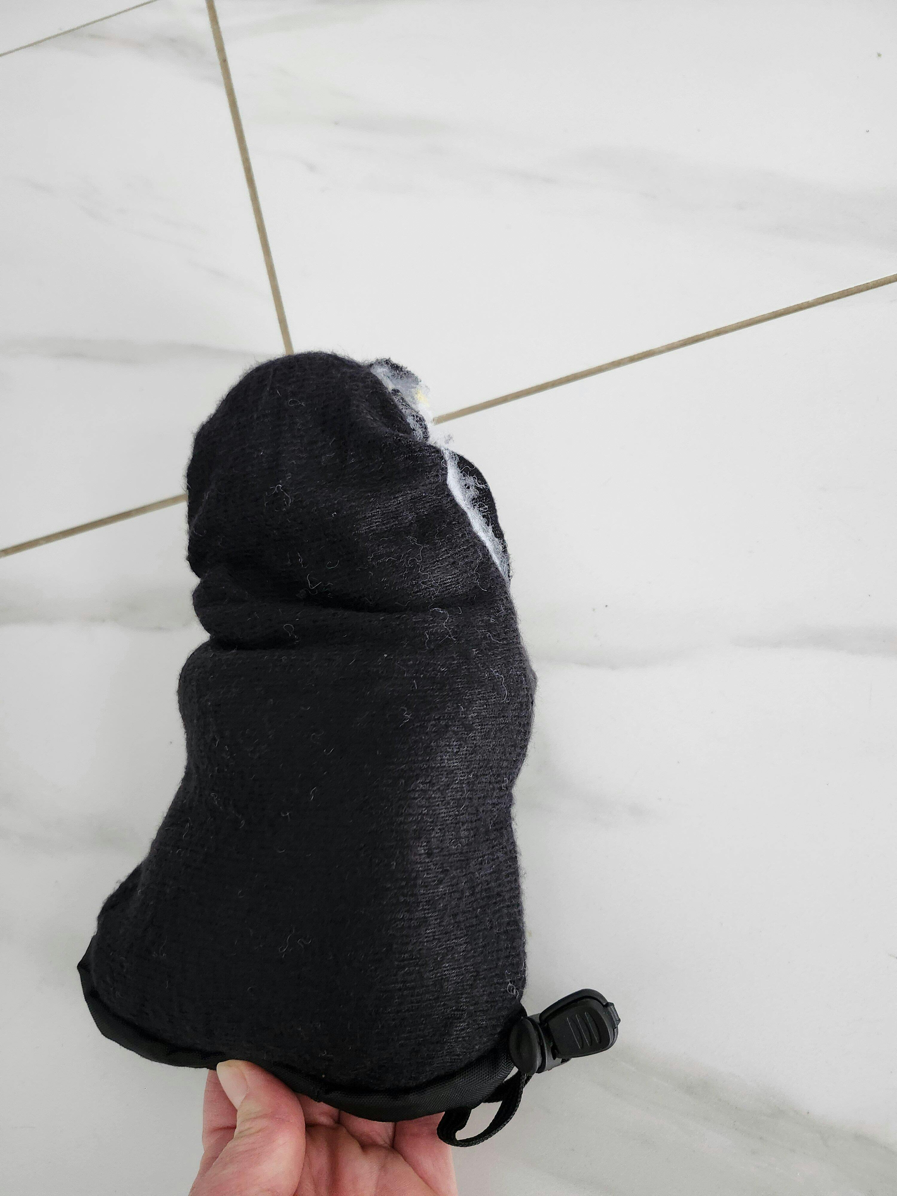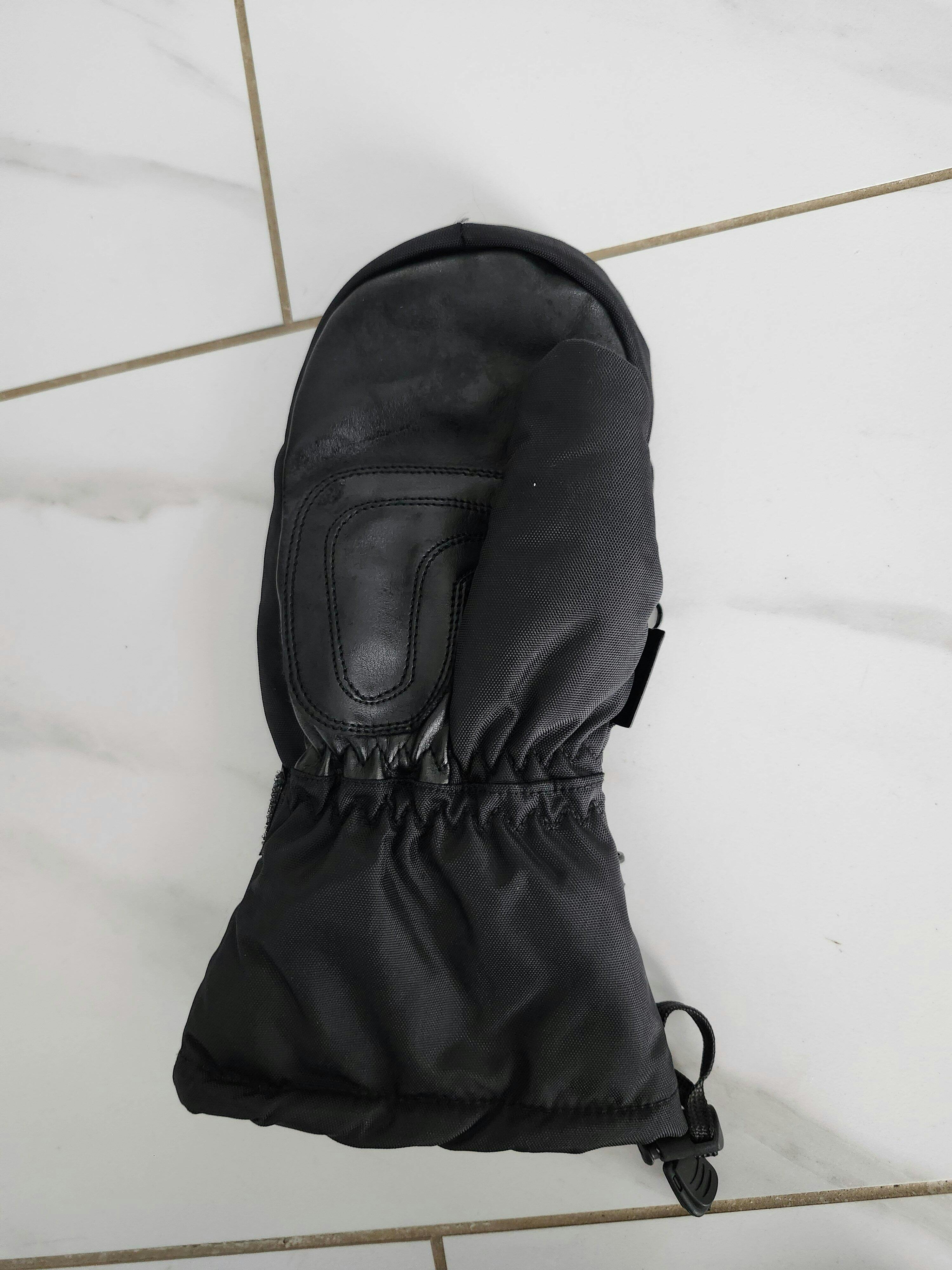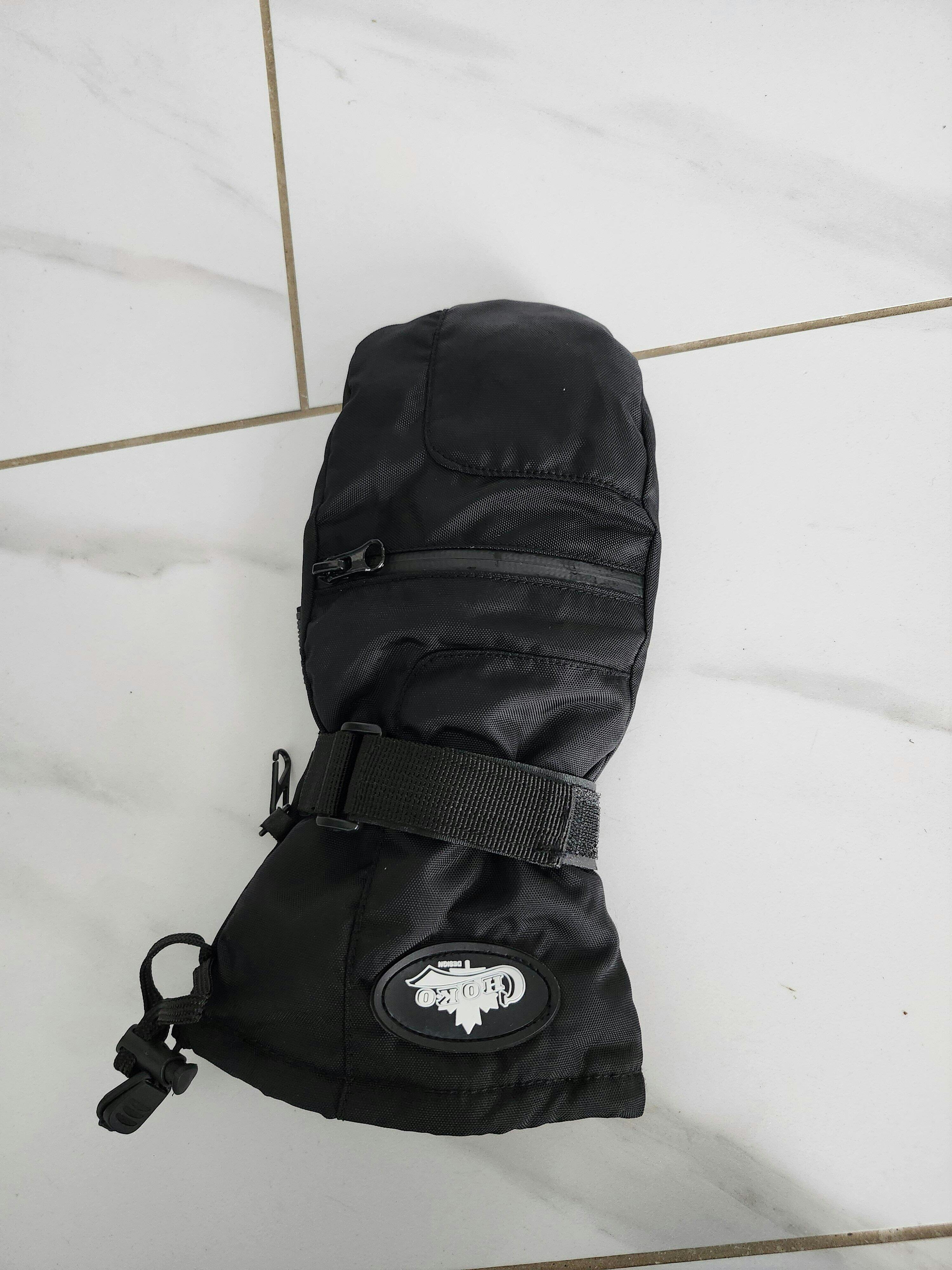 • La dragonne réglable en velcro et le poignet en nylon élastiqué empêchent la neige d'entrer.